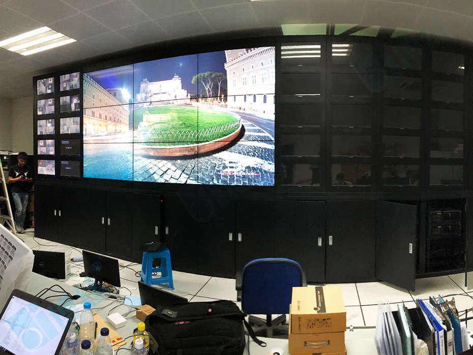 该项目启动前期,博慈根据其使用需求以及用途,首先为其提供了一套3×3拼接的多功能监控管理系统效果图,供其赏识、确认,最终博慈为其“独家设计”的效果图得到了该负责人的极度认可。在经过博慈工程师对其实地的勘察与测量,如期的按照合约时间、安装流程为其采用9台三星3.5mm46寸原装整机缔造一套3×3拼接的多功能监控管理系统平台。