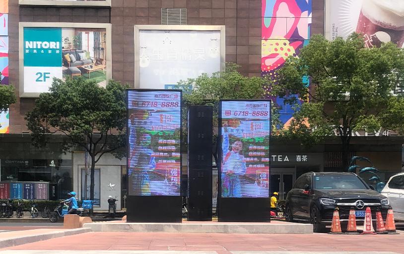 在项目安装前期,博慈工程师对奉贤圆心汇广场的项目安装环境进行多方勘探、测量并结合该公司对显示效果的要求,最终决定采用博慈自主报关的P3.0 LED显示屏打造一套室外多面展示系统平台。